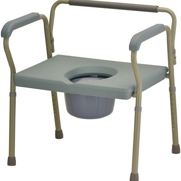 Designed for easy transfers and superior stability, this heavy-duty drop-arm commode provides dependable support and comfort for everyday use.