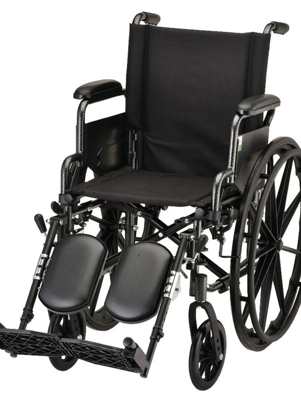 A durable yet lightweight wheelchair featuring flip-back detachable arms and swing-away footrests for easy transfers and maximum comfort.